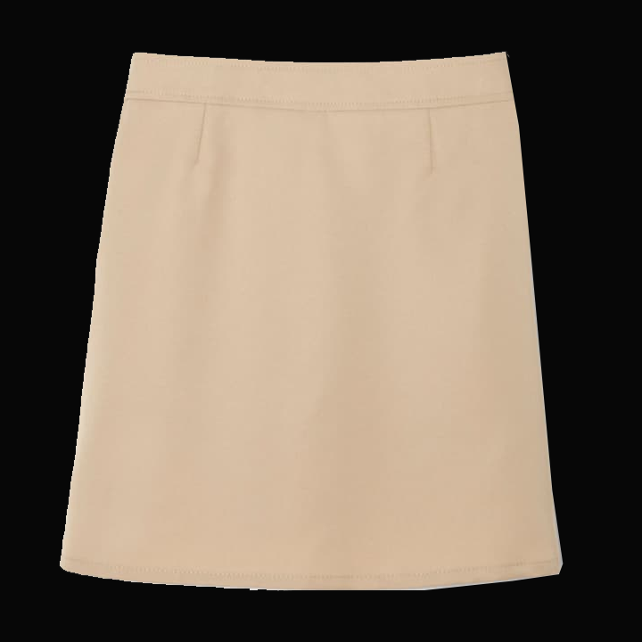 Polyester. Wrinkle No More fabric for easy care. Hidden side zipper. Decorative tab with silver buckle. Adjustable waist on youth and plus sizes. Adult does not have adjustable waist. Hidden knit shorts. Front pleats. Machine washable.